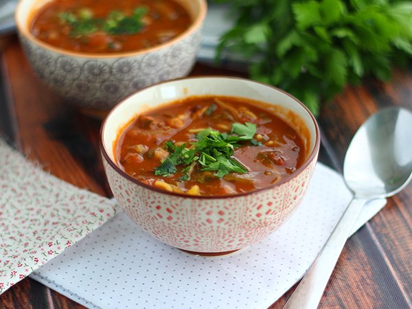 Receta de la Harira. Sopa tipo harira con ingredientes diferentes.