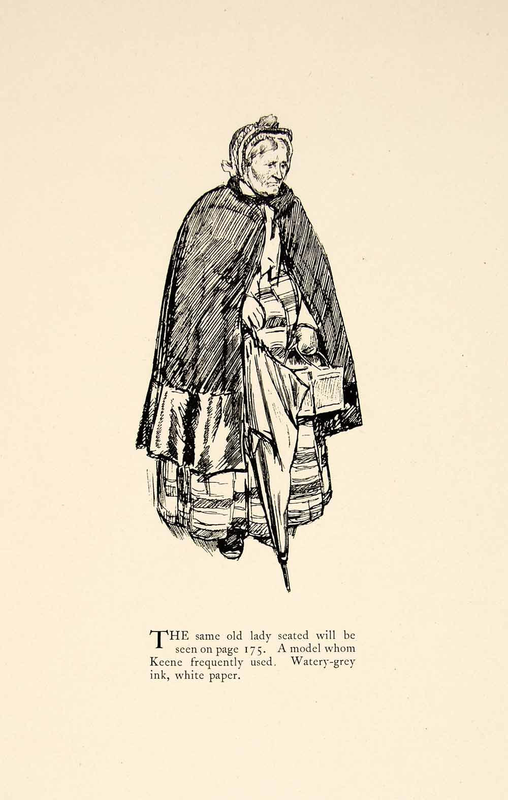 1897 Wood Engraving Charles Keene Pen Drawing Elderly Woman Figure Ske Period Paper Historic Art Llc